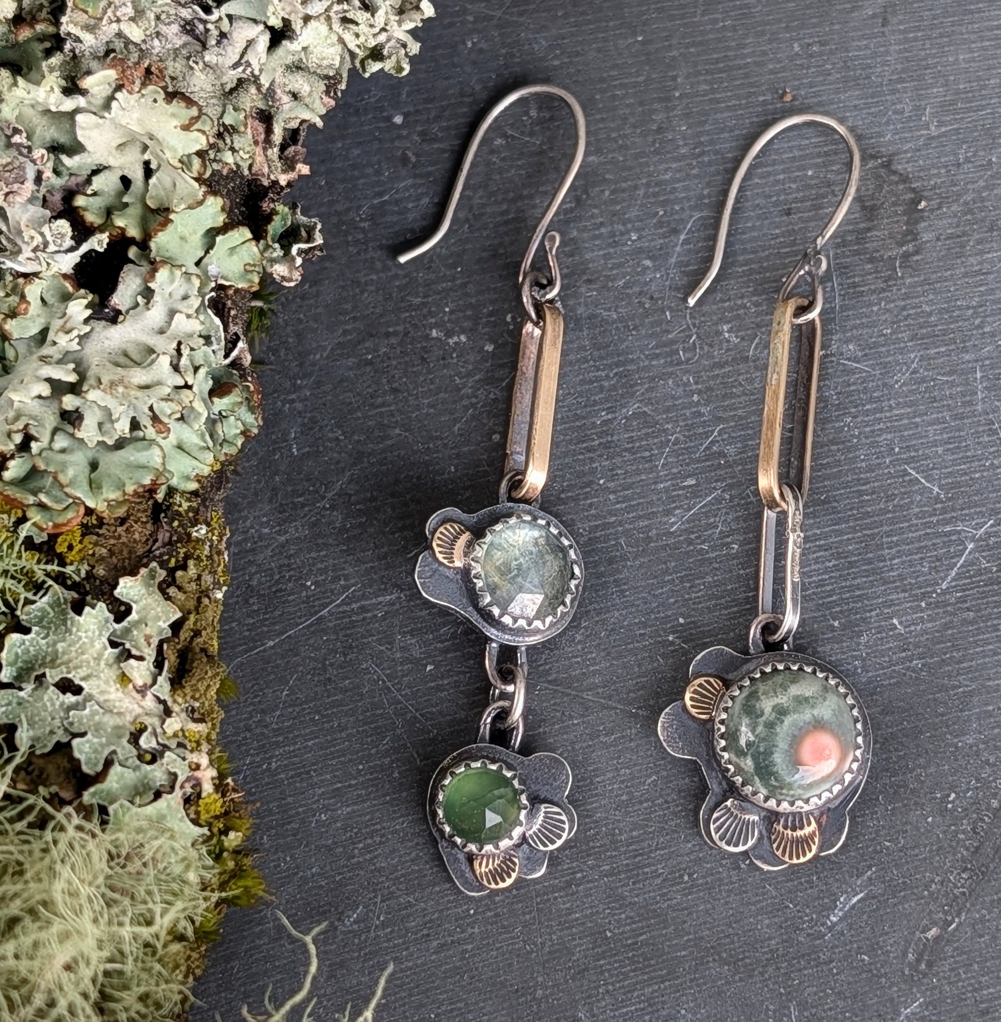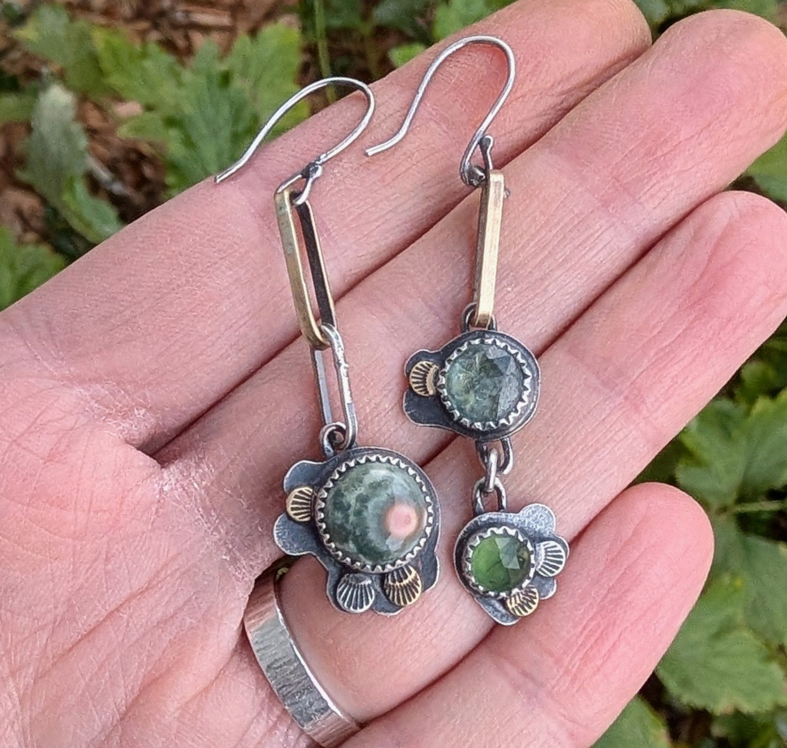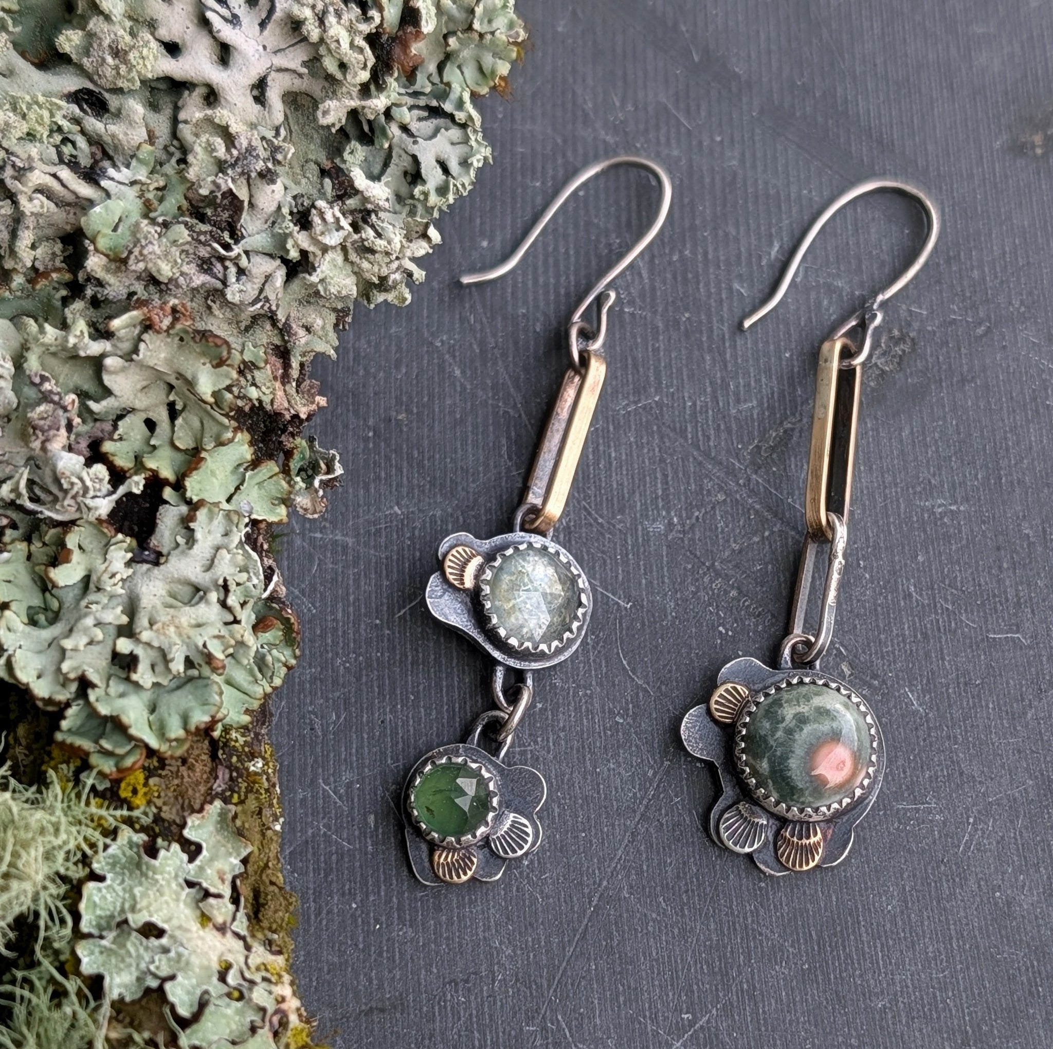 Made of sterling silver, brass, gemstones, and forest floor magic.
