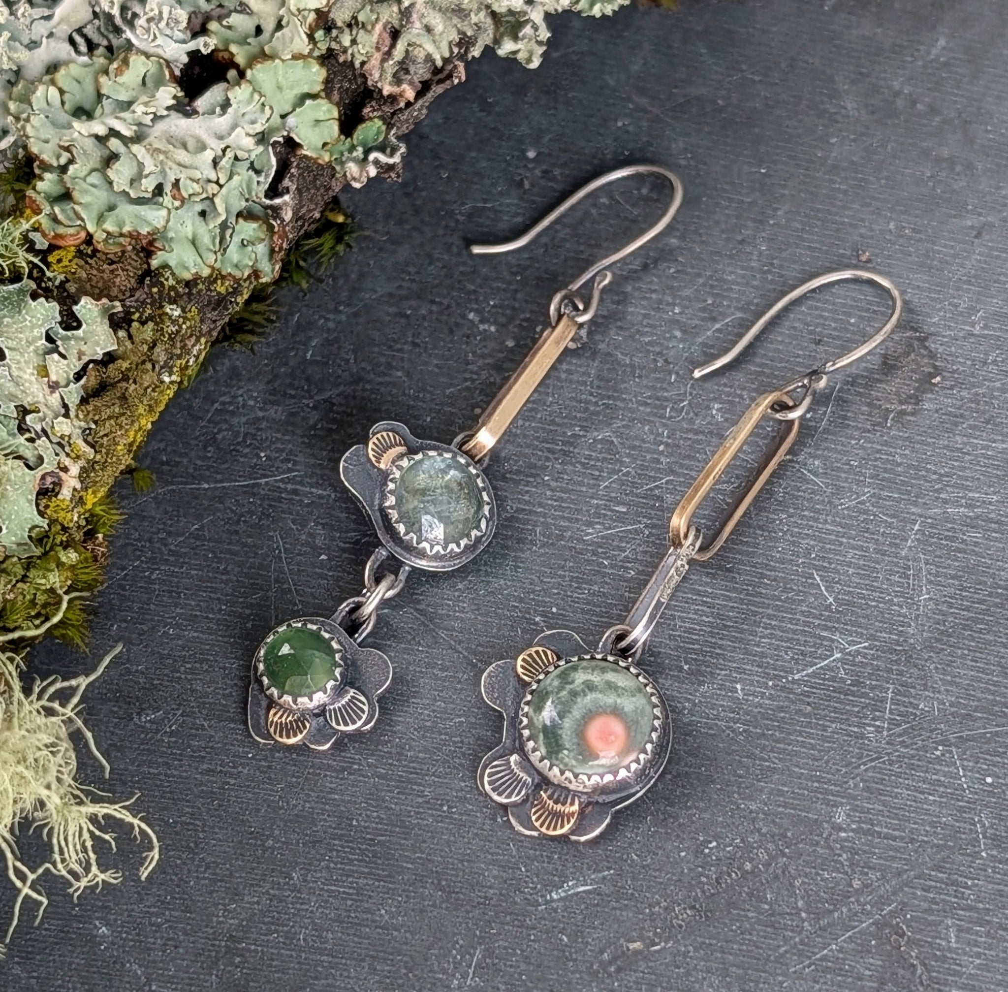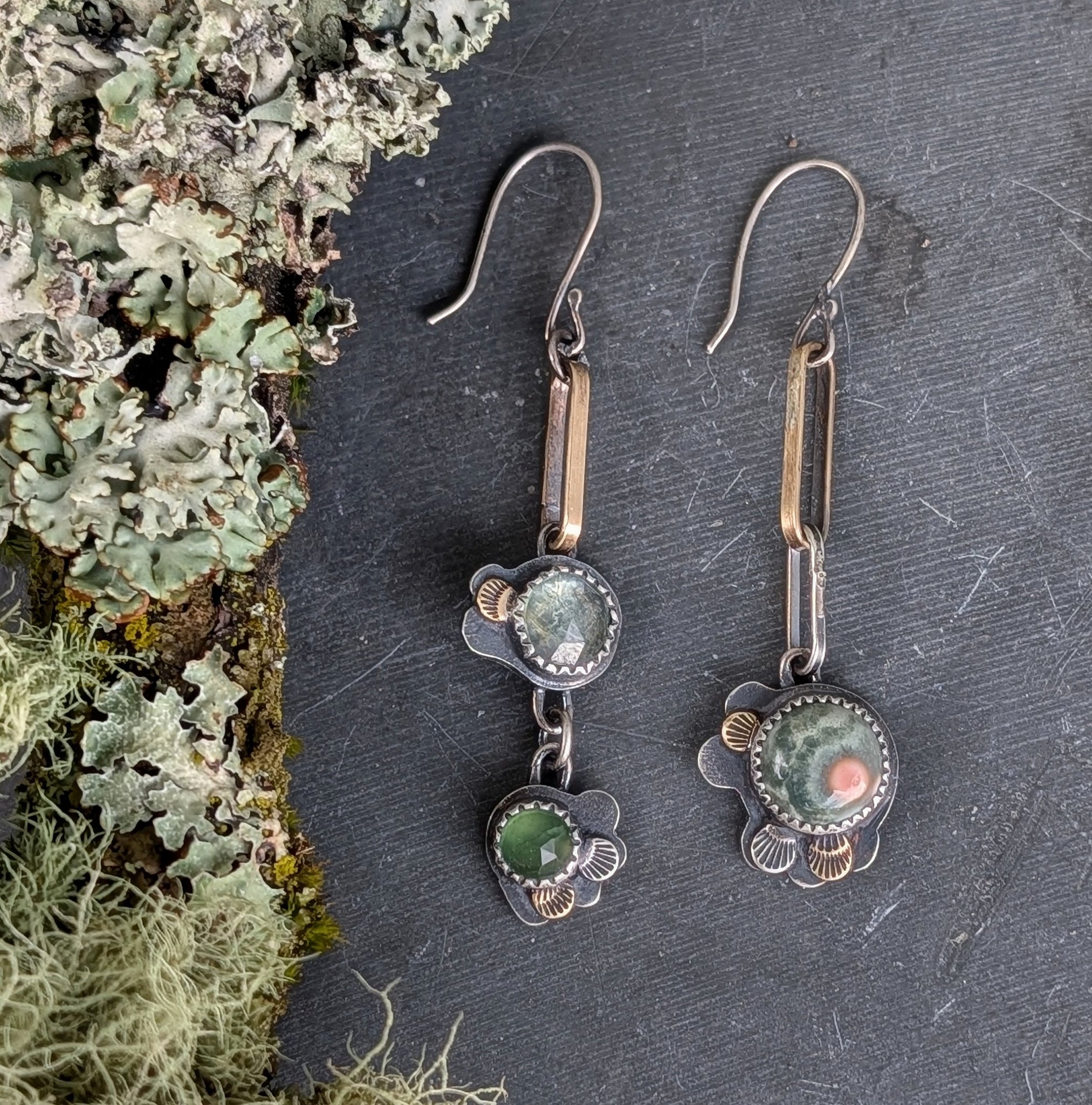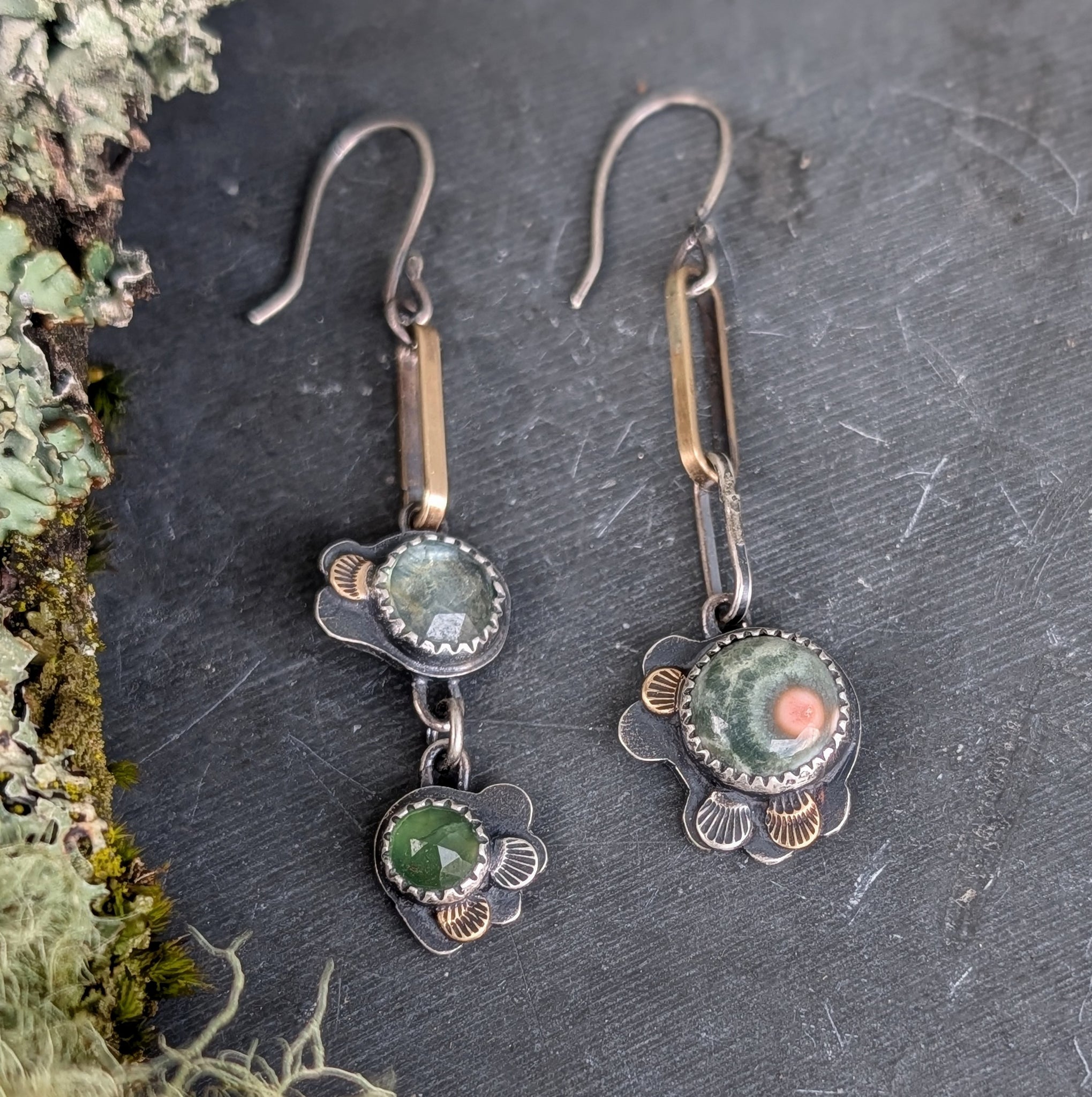 Made of sterling silver, brass, gemstones, and forest floor magic.