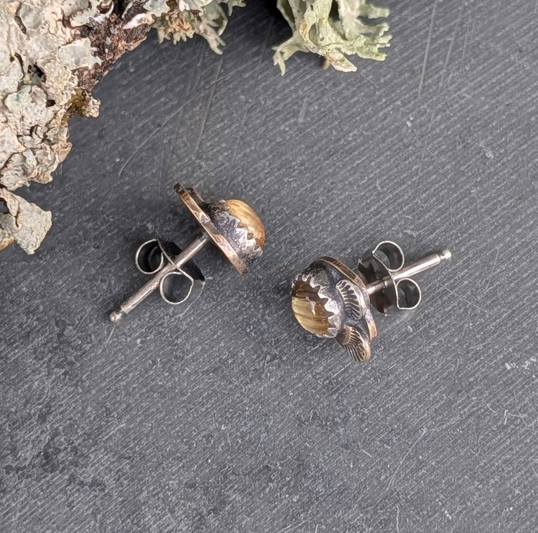 This tiny pair features posts (studs) made of brass, sterling silver and stainless steel earring backs. This pair is lightweight and perfect for everyday wear.