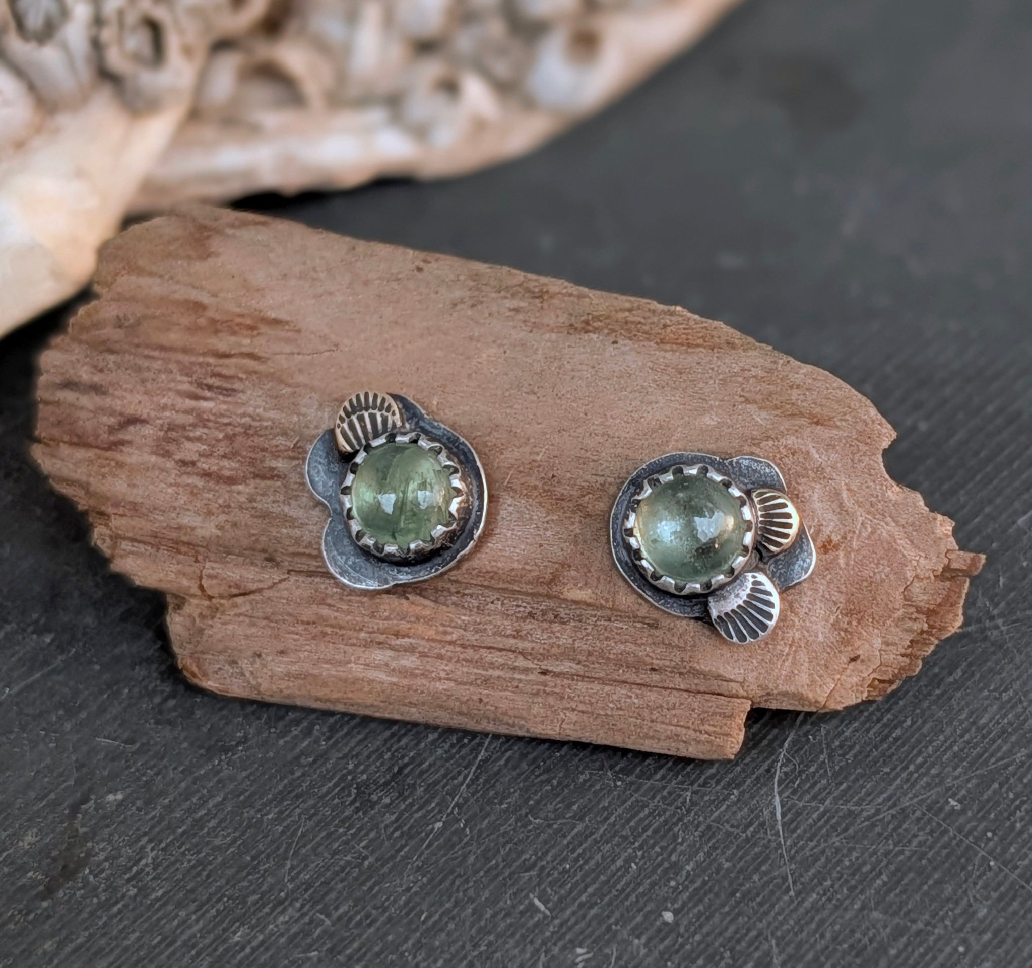 This tiny pair features posts (studs) made of sterling silver, brass and stainless steel earring backs. This pair is lightweight and perfect for everyday wear.